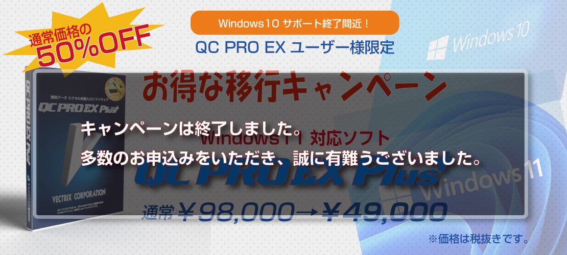 つきましては、現在QC PRO EXをご使用中のユーザー様限定で後継ソフトの「QC PRO EX Plus」へのお得な移行キャンペーンを実施いたします。